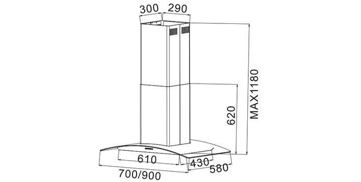 Chimney Height:620mm+560mm