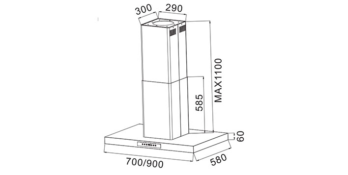 Material sS201 & tempered glassAir flow:1200m3/h